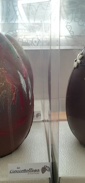 Momento speciale nel quale il cioccolato la fa da padrone è la Pasqua. Ogni anno propongo qualcosa di nuovo, qualche nuovo soggetto a forma di uovo che faccia un po’ sognare grandi ma soprattutto i piccini. Oltre alle varie personalizzazioni di soggetti e colorazioni, potete portarmi il regalo che volete nasconderci dentro!